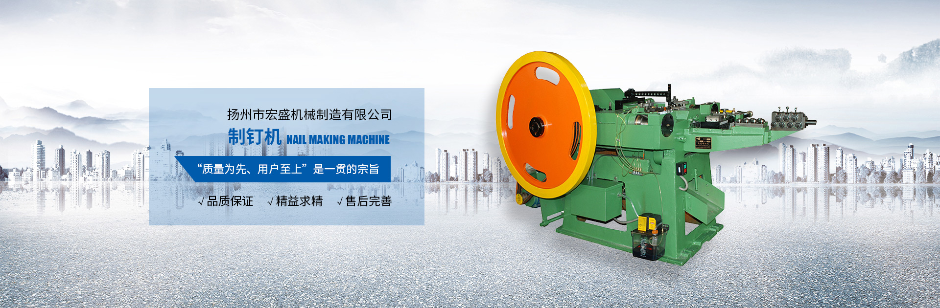揚(yáng)州市宏盛機(jī)械制造有限公司是具有20多年歷史生產(chǎn)制釘機(jī)系列的企業(yè),技術(shù)力量雄厚,生產(chǎn)設(shè)備齊全、質(zhì)量優(yōu)質(zhì)、服務(wù)周到、價(jià)格適中、工藝精湛,本公司生產(chǎn)的HZD系列制釘機(jī)產(chǎn)品覆蓋國內(nèi)外20多個(gè)省市自治區(qū),外銷東南亞等諸多國家和地區(qū),是全國同行業(yè)內(nèi)的優(yōu)質(zhì)產(chǎn)品,并得到用戶認(rèn)可。歡迎諸位新老客戶光臨我公司選用產(chǎn)品!